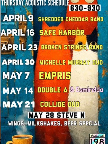 For all things Breakfast, Brunch, Lunch Picks, Take Out, Dinner, Live Shows, Happy Hour, Sweet Shop and Smiles here at 198